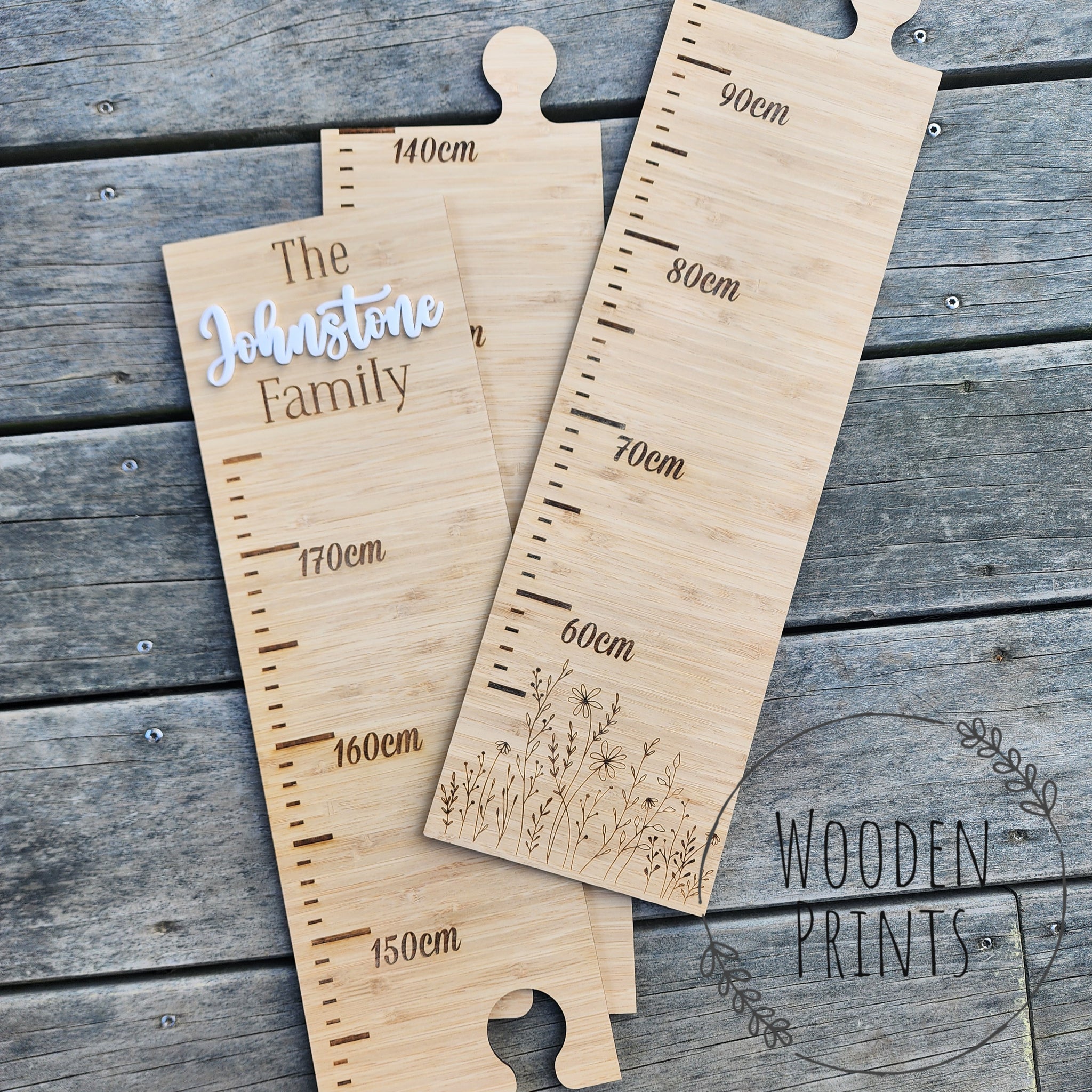 Our height rulers are made from bamboo and measure approximately 140cm (H) x 15cm (W) once assembled.