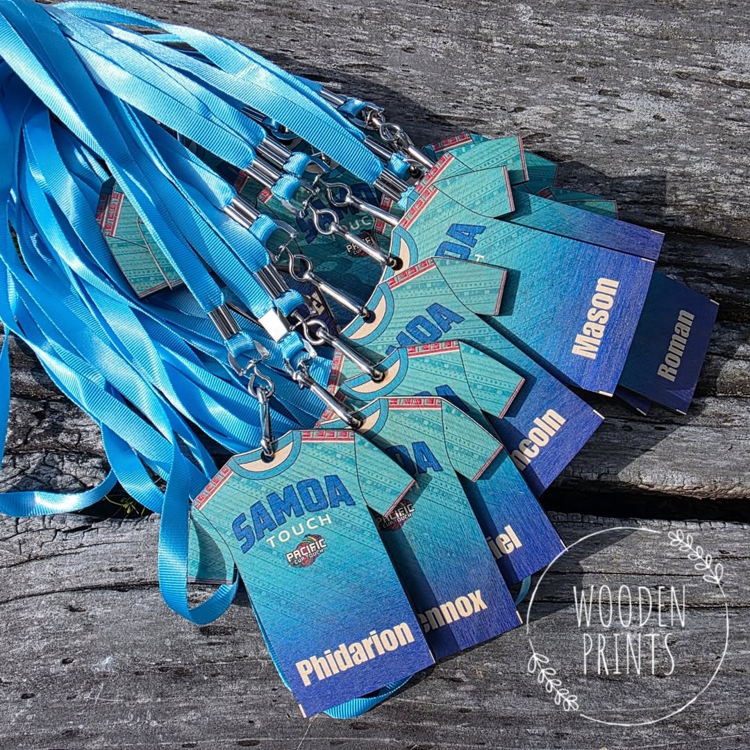 After placing your order, please email woodenprints@outlook.co.nz with your medal details (names, wording, logos and prefered lanyard colour).